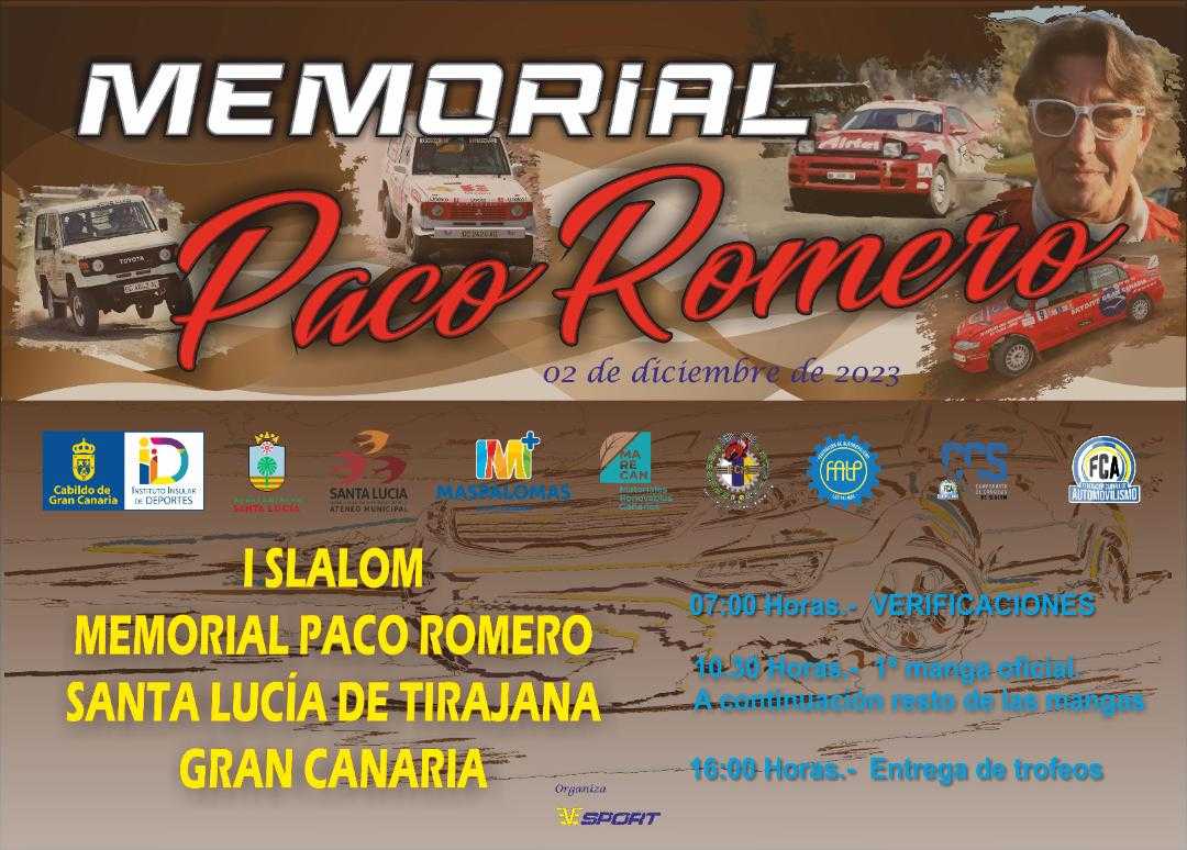 El próximo sábado 2 de diciembre se disputará el Slalom Memorial Paco Romero en el habitual tramo de Santa Lucía de Tirajana, prueba que cerrará el Campeonato Insular de Gran Canaria de esta especialidad sobre tierra, además de puntuable para el Campeonato de Canarias 2023.