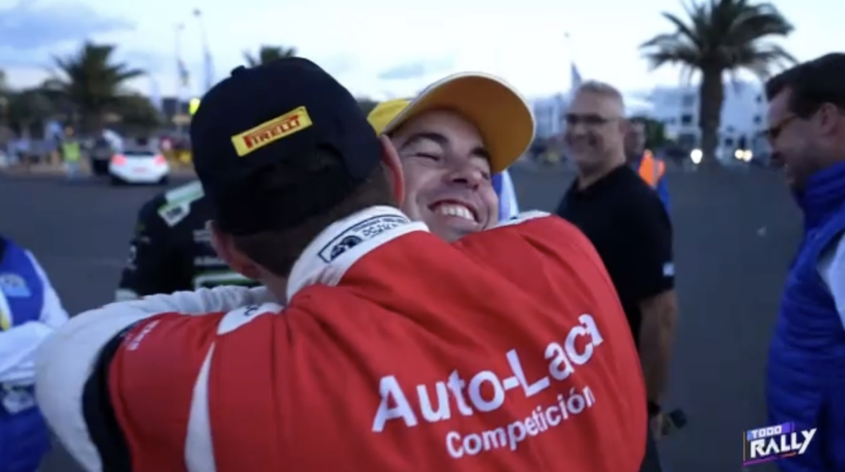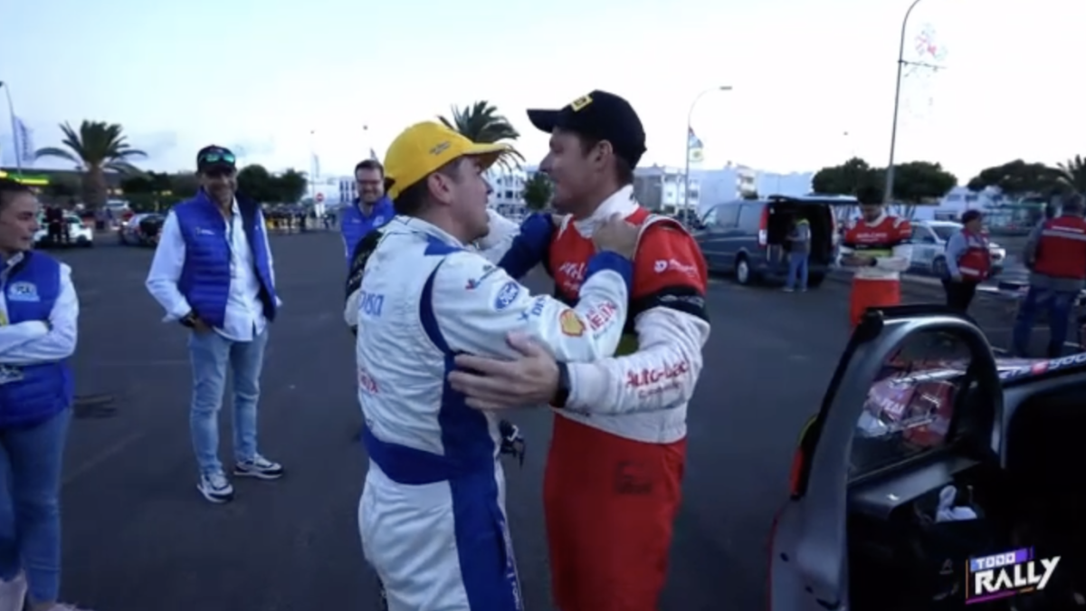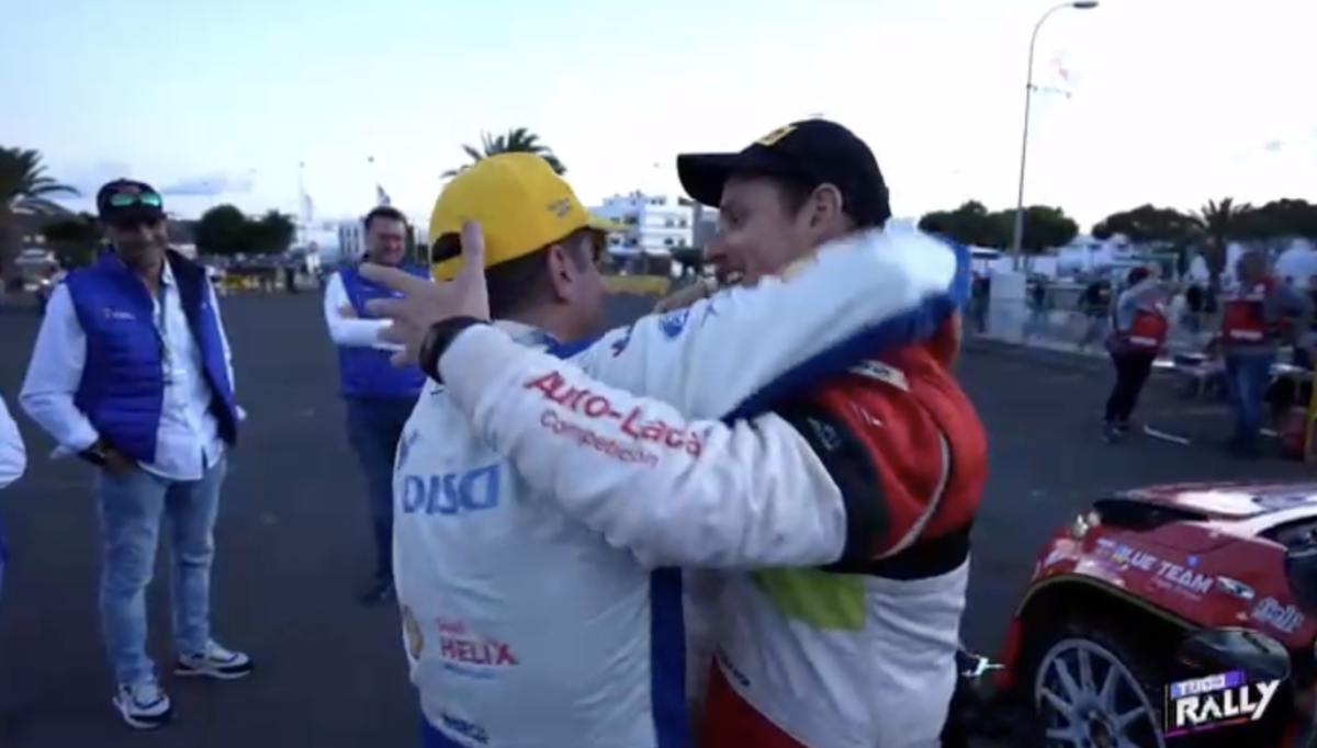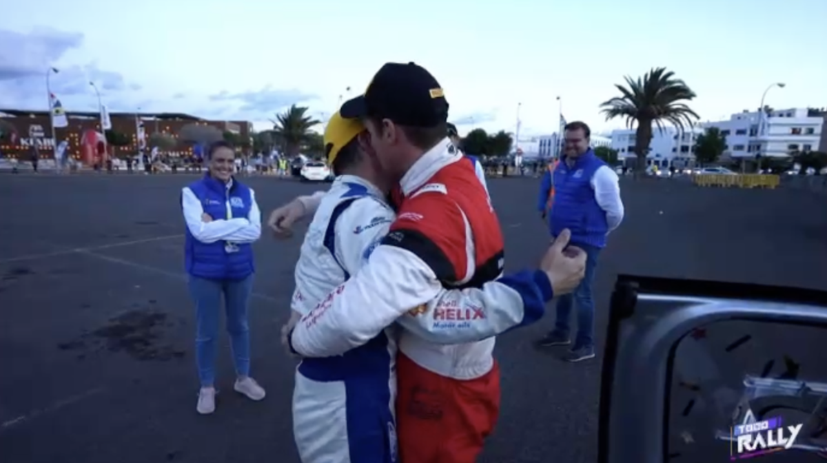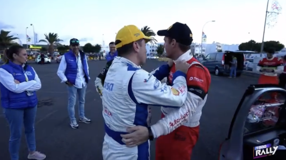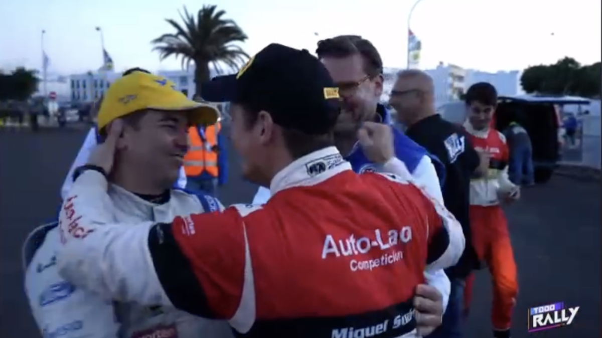 Los compadres, como ambos se denominan, se fundieron en un cálido y cariñoso abrazo que captaron las cámaras del programa Todo Rally, de la Televisión Canaria, demostrando que la amistad está por encima de la rivalidad.