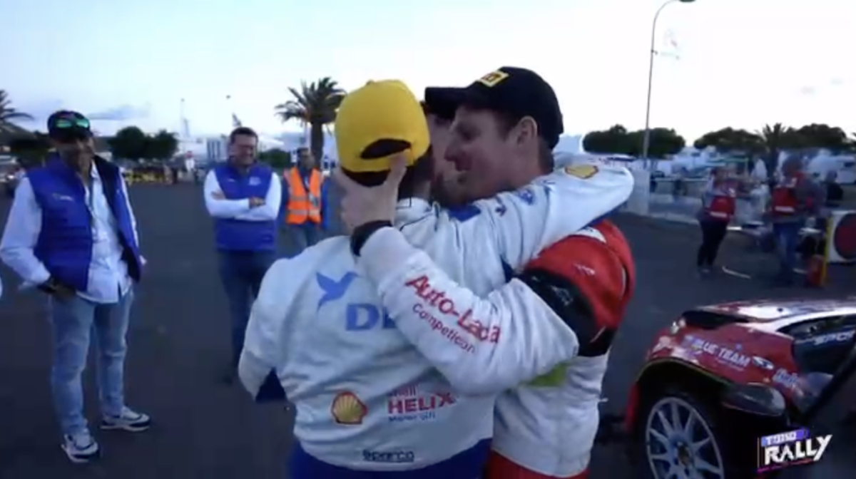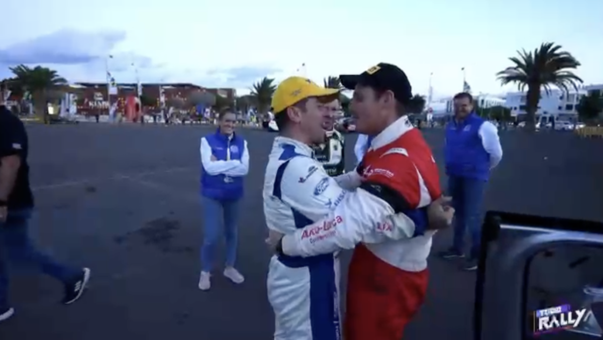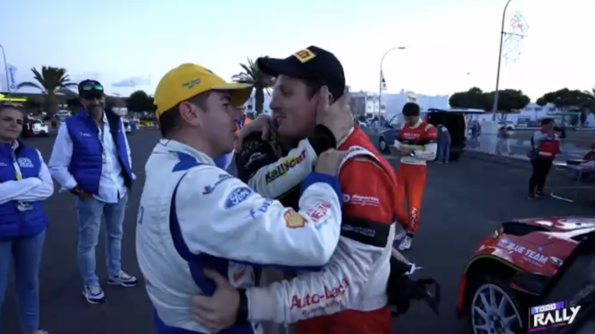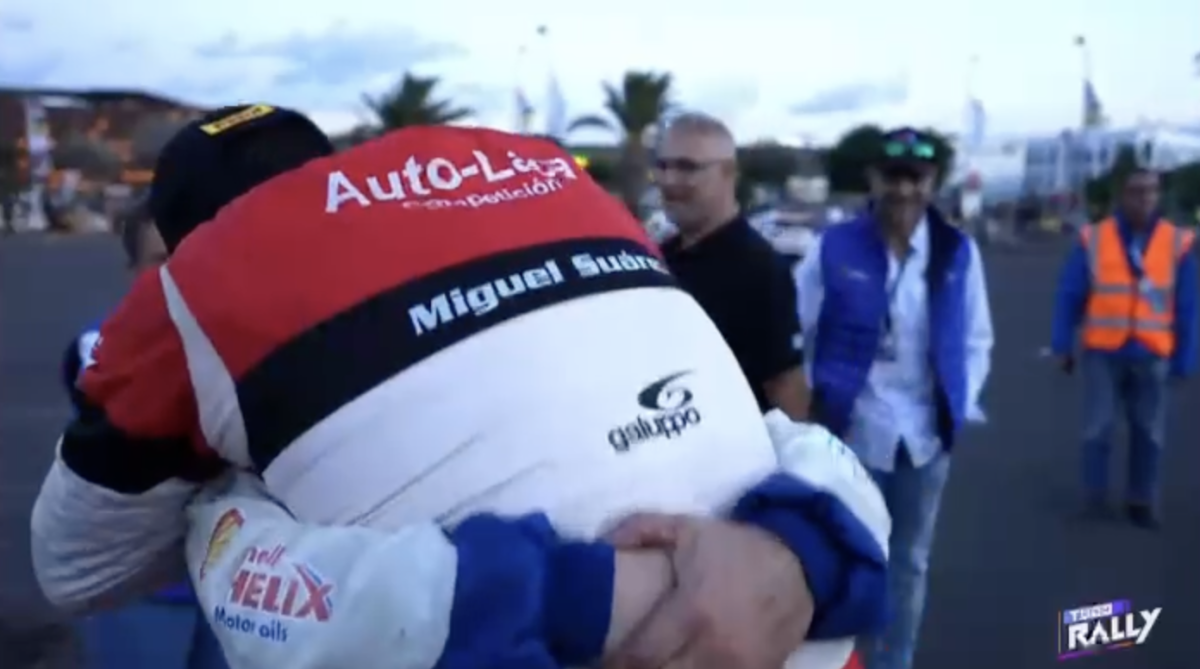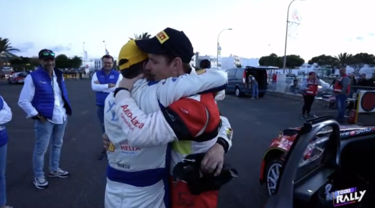 Los compadres, como ambos se denominan, se fundieron en un cálido y cariñoso abrazo que captaron las cámaras del programa Todo Rally, de la Televisión Canaria, demostrando que la amistad está por encima de la rivalidad.