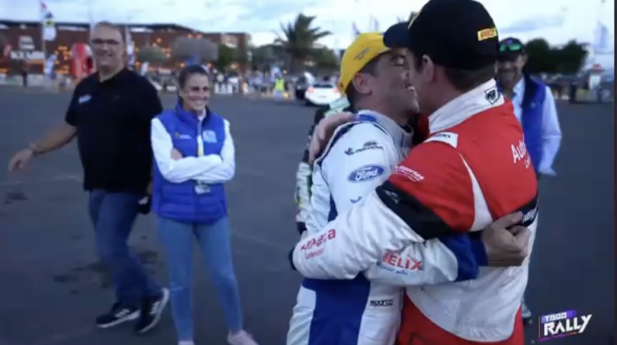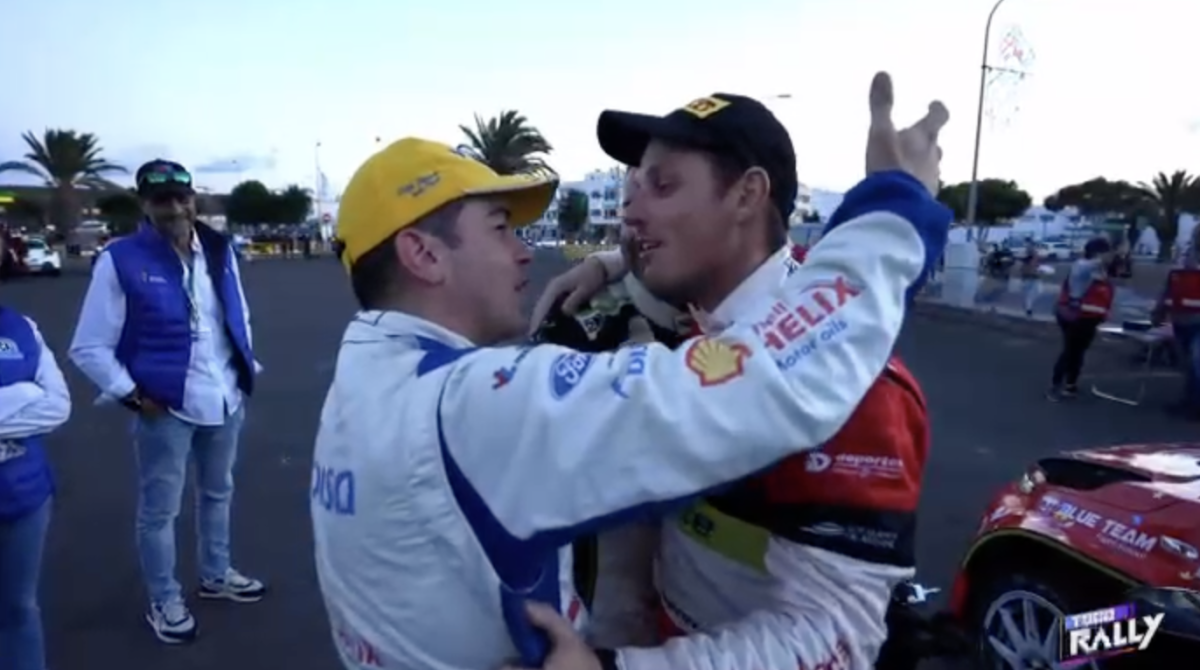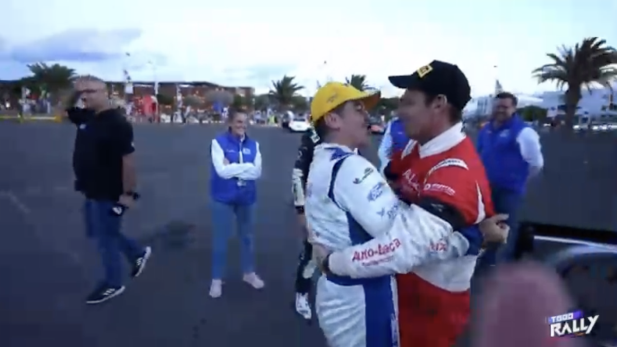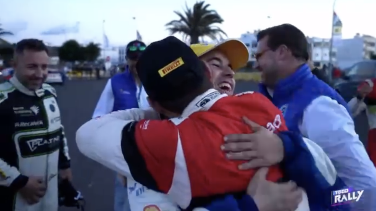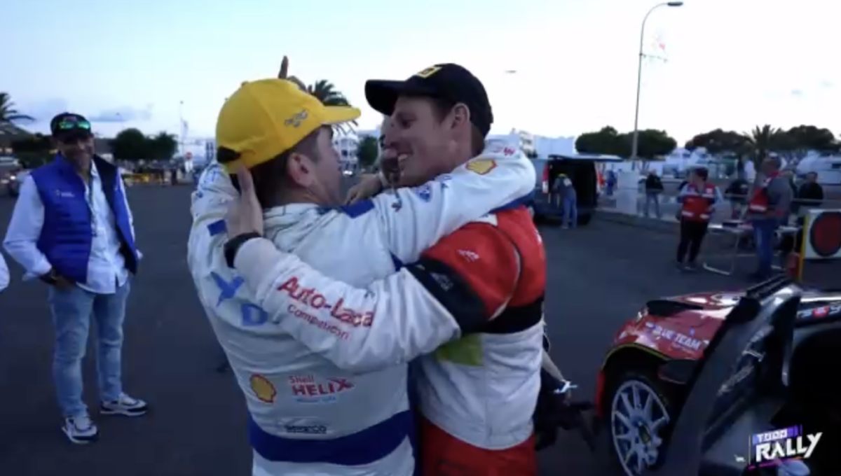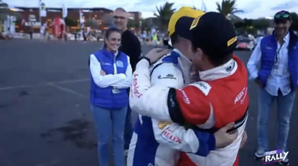 Los compadres, como ambos se denominan, se fundieron en un cálido y cariñoso abrazo que captaron las cámaras del programa Todo Rally, de la Televisión Canaria, demostrando que la amistad está por encima de la rivalidad.