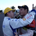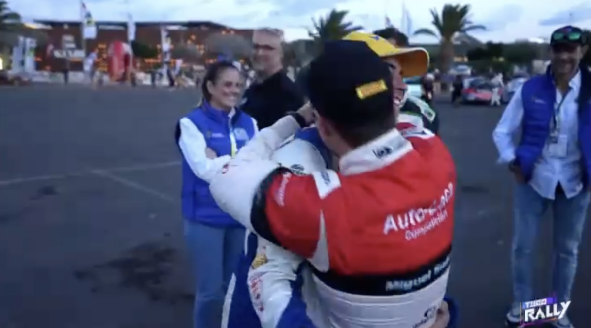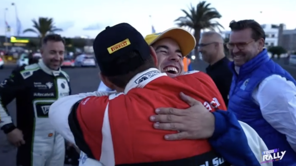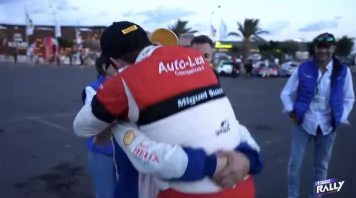 La llegada de los equipos participantes en el Rally Isla de Lanzarote al parque cerrado ubicado en Arrecife vivió un precioso momento, el de la inmensa alegría del piloto tinerfeño Enrique Cruz por el título logrado por su buen amigo, el palmero Miguel Suárez.