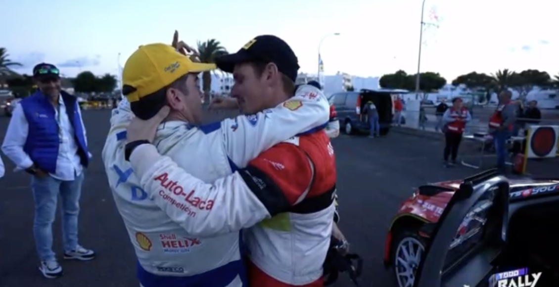 La llegada de los equipos participantes en el Rally Isla de Lanzarote al parque cerrado ubicado en Arrecife vivió un precioso momento, el de la inmensa alegría del piloto tinerfeño Enrique Cruz por el título logrado por su buen amigo, el palmero Miguel Suárez.