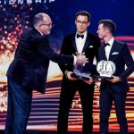 Kalle Rovanperä y su copiloto Jonne Halttunen recogieron sus trofeos de piloto y copiloto, mientras que el director del equipo, Jari-Matti Latvala, aceptó agradecido el trofeo del campeonato de constructores en nombre de Toyota Gazoo Racing.
