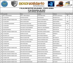Los organizadores del Slalom Motor Solidario, que este año se disputará en el municipio de Antigua y en el tramo de «Punta Goma», han publicado la lista de inscritos de la cita final del Campeonato Insular de Fuerteventura de Slaloms en Tierra, la que decidirá su campeón.