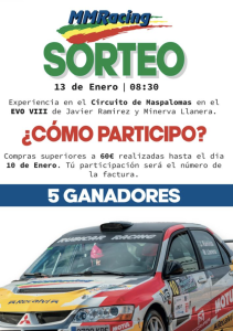 El equipo compuesto por los grancanarios Javier Ramírez y Minerva Llarena oferta una posibilidad de montarse en la derecha de su Mitsubishi Lancer Evo VIII en el Circuito de Maspalomas entrando en un sorteo para todos los clientes que compren más de 60 euros en uno de sus principales patrocinadores, MMRacing.
