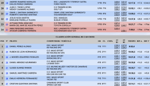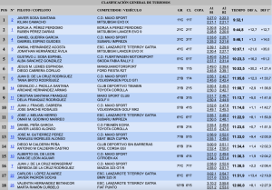 En lo meramente deportivo los majoreros Javier Sosa y Kilian Camacho (Mitsubishi Lancer Evo IX) se llevaron el triunfo tras la celebración de cuatro tramos, logrando un tiempo total de 9:32,1, lo que les valió para superar en 12.7 a los campeones de Canarias de Slaloms, sus paisanos Borja Pérez y Rubén Pérez (Mitsubishi Lancer Evo IX).