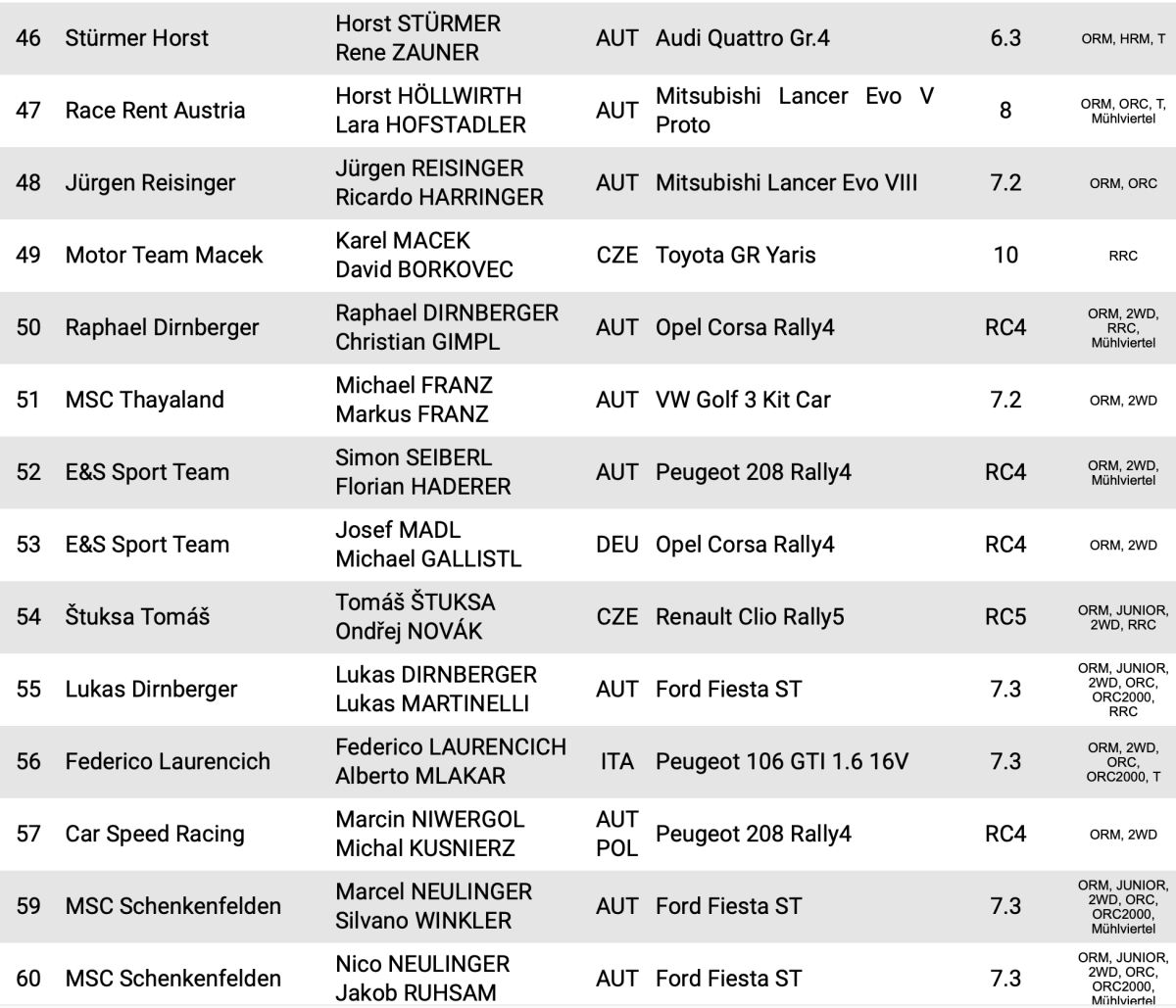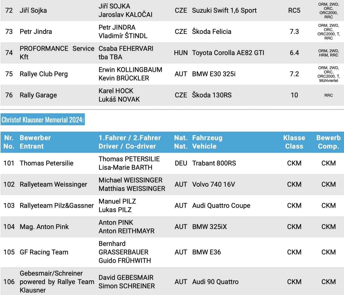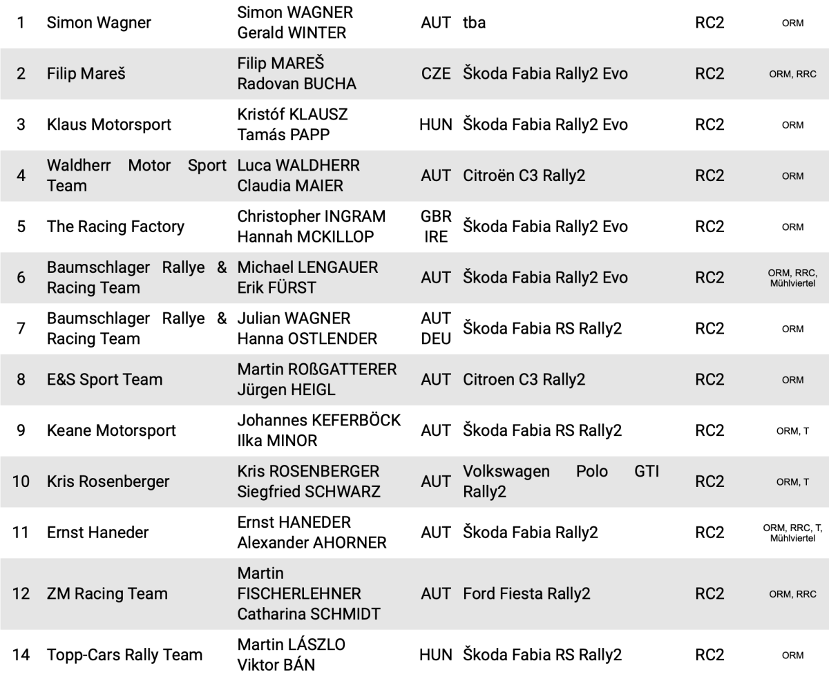 Con un total de 67 equipos participantes, entre los que destacan los 18 equipos con unidades Rally2, están inscritos en la cita austriaca Simon Wagner, Filip Mares, Christopher Ingram y Martin Laszlo. Recordar que el año pasado fue el galo Adrien Fourmaux el que se llevó el triunfo con un Ford Fiesta Rally2.
