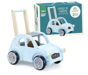 Para los que se inician en la movilidad, el Citroën 2 CV toma la forma de un atractivo carrito andador en madera. Equipado con ruedas silenciosas y sistema antivuelco, ayuda a desarrollar el equilibrio y la motricidad a partir de 1 año (84,90 euros).