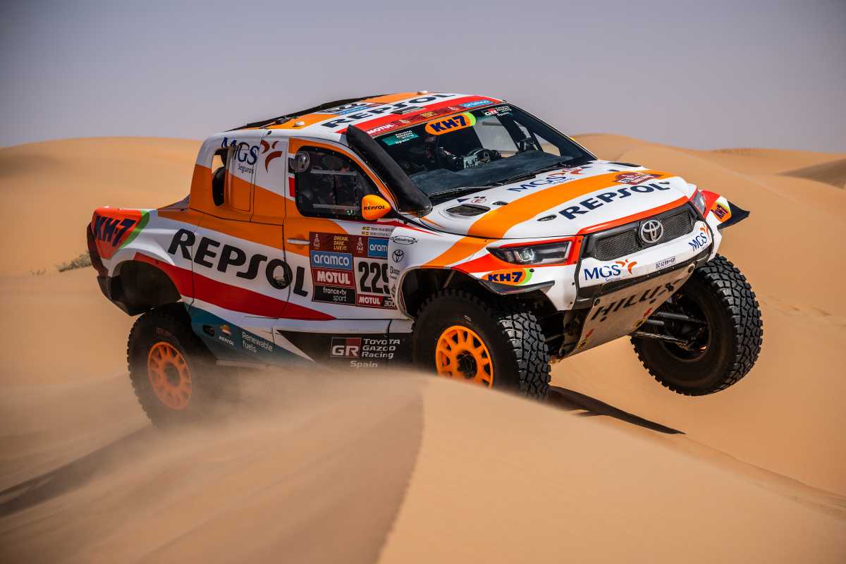 El reto del Dakar no es únicamente una cuestión de destreza en el pilotaje y pericia en la navegación. El Repsol Toyota Rally Team disputa una segunda carrera paralela cada día, para garantizar una asistencia perfecta a Isidre Esteve y Txema Villalobos. De este modo, el Toyota Hilux T1+ número 235 puede abordar cada nueva etapa al máximo de sus posibilidades. El Dakar 2024 arranca el próximo 5 de enero en Arabia Saudí. Conozcamos más de cerca cómo se organiza el equipo apoyado por Repsol, MGS Seguros, TOYOTA GAZOO Racing España y KH-7 en la carrera más dura del motorsport.