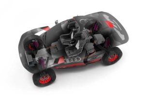 El Audi RS Q e-tron afronta su tercer Rally Dakar, la prueba más dura del año para el equipo Audi Sport. Este prototipo pionero cuenta con un tren motriz eléctrico y con un sofisticado sistema de tracción completamente diferente al de los vehículos convencionales que compiten en el Dakar. Con un diseño inteligente en el que ha primado la eficacia, la ligereza y la robustez, la tracción quattro Audi RS Q e-tron le permite navegar por las dunas con la máxima motricidad y acelerar de 0 a 100 km/h en tierra en solo 4,5 segundos.