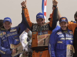 Alfie Cox y Giniel de Villiers son pioneros. No de los primeros, aquellos que se lanzaron al Dakar a finales de diciembre de 1978. Alfie y Giniel son unos apasionados del rally que iniciaron su andadura principios de los años 2000, con tan excelentes actuaciones que generaron un movimiento decisivo en su país, Sudáfrica. En aquella época, pocos conocían a Jeremy Davies, el primero en abrir camino en el rally París-El Cabo en 1992. El joven Alfie Cox, un sólido rodador que ya causaba estragos en motocross y bajas, no tardó en seguir los pasos de su amigo unos años más tarde… en cuanto se presentó la oportunidad. “Yo ya era distribuidor de KTM en Sudáfrica y Heinz Kinigadner me dio una moto para que pudiera correr el Dakar en 1998”, comenta el antiguo motorista, que terminó 4º en su primer intento. “Como funcionó bien, competí siete ediciones en moto y luego cinco veces en coche”. Aunque actuó principalmente como aguador, Cox terminó la edición de 2002 en 2ª posición, acompañado en el podio por sus dos compañeros de la gran época de Gauloises-KTM, los tristemente fallecidos Fabrizio Meoni y Richard Sainct.
