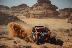 El Dakar ha entrado en modo aventura este sábado. Para los pilotos de la categoría SSV, la primera etapa de competición, entre Al-Ula y Al Henakiyah, se ha revelado durísima. También para Eduard Pons y Jaume Betriu, que han sabido superar todas las dificultades para completar los 414 kilómetros cronometrados en la 12ª posición, la misma que ocupan en la clasificación general. El Can-Am Maverick X3 del equipo Pons Rallysport ha tenido dos pinchazos y ha cedido 1 hora y 25 minutos al líder.