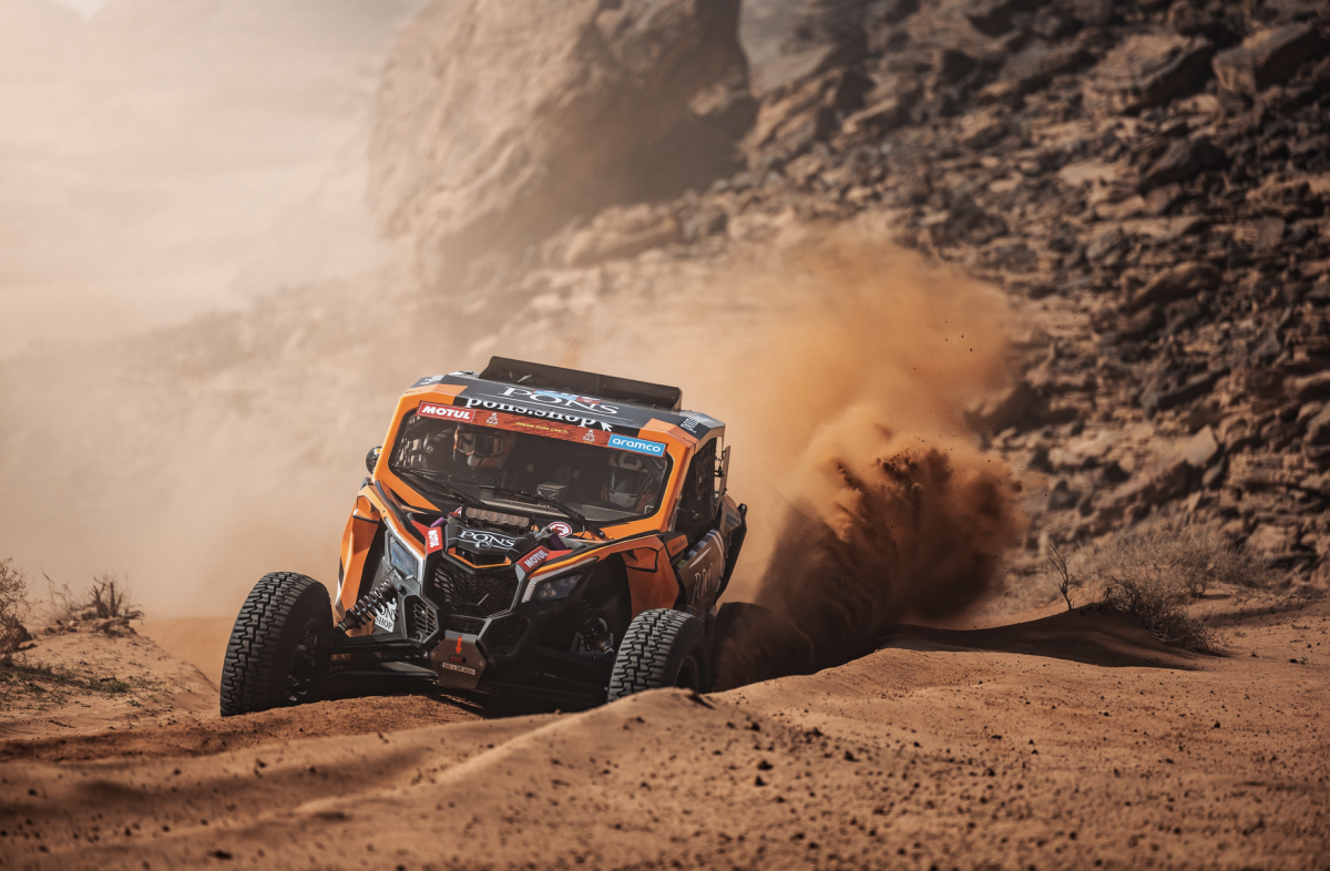 El Dakar ha entrado en modo aventura este sábado. Para los pilotos de la categoría SSV, la primera etapa de competición, entre Al-Ula y Al Henakiyah, se ha revelado durísima. También para Eduard Pons y Jaume Betriu, que han sabido superar todas las dificultades para completar los 414 kilómetros cronometrados en la 12ª posición, la misma que ocupan en la clasificación general. El Can-Am Maverick X3 del equipo Pons Rallysport ha tenido dos pinchazos y ha cedido 1 hora y 25 minutos al líder.