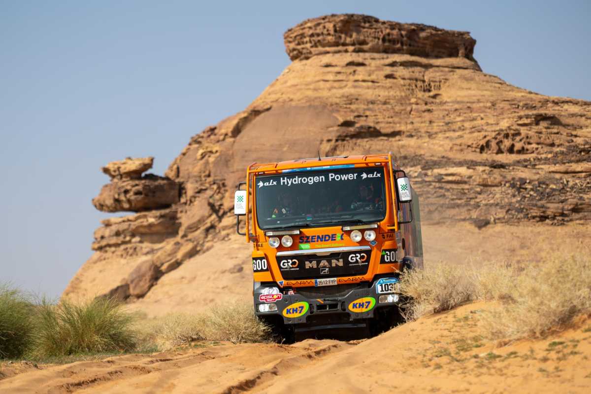 El KH-7 ECOVERGY de Jordi Juvanteny, José Luis Criado y Xavi Ribas ha protagonizado una brillante primera etapa del Dakar 2024, trazada entre Al-Ula y Al Henakiyah, que ha dejado muy buenas sensaciones de cara a las exigentes jornadas que están por venir. Propulsado por Hidrógeno y HVO (diésel renovable a partir de aceite vegetal hidrotratado), el MAN 6×6 se ha comportado de un modo excelente a lo largo de los 70 kilómetros cronometrados de la categoría Mission 1000 y el equipo ha sabido sortear muy bien las piedras y el terreno arenoso, principales características de esta primera prueba de fuego del rally.