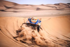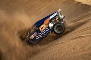 Sólo una pequeña pérdida de navegación en la última parte de la especial ha hecho perder a Sanz y Gerini cerca de tres minutos. Eso les ha costado cruzar la meta decimosextos, a 25 minutos y 11 segundos de Stéphane Peterhansel (Audi), que hoy precisamente salía justo detrás de ellos, y terceros de T1.2, a cuatro minutos y 13 segundos de Mathieu Serradori. En la general, la de KH-7 ocupa la 20ª posición absoluta y la segunda ya de T1.2, a 19 minutos y 54 segundos del francés.
