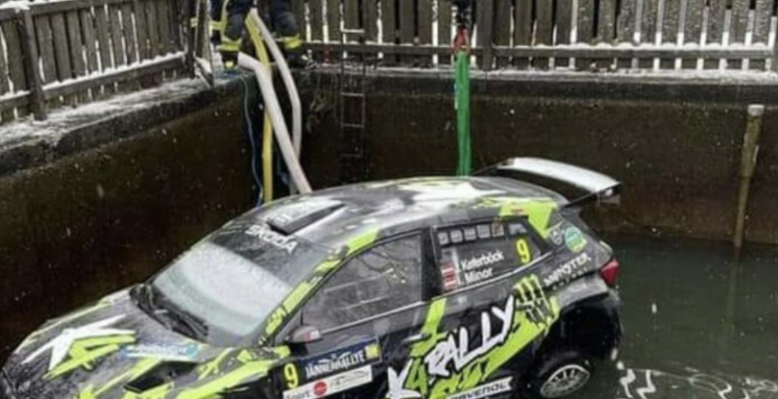 Un Skoda Fabia Rally2 acaba en el fondo en un estanque en Jänner Rally