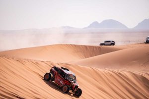 -Duro revés para el piloto de Vic, que ha sufrido una rotura del turbo en el kilómetro 24 de la especial, en el tramo de dunas.