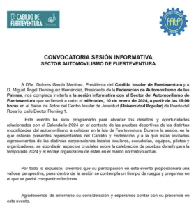 El Cabildo de Fuerteventura y la Federación de Automovilismo de Las Palmas convocan al sector deportivo del Automovilismo para este miércoles 10 de enero. Se está trabajando conjuntamente para sacar esta disciplina hacia adelante: ahora toca que Clubs y deportistas se unan también. Acude y participa.
