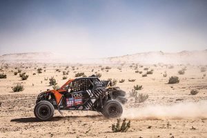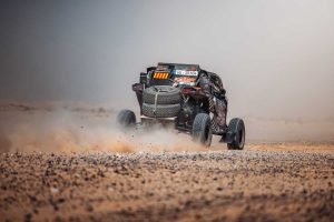 La especial del día empezaba con pistas rotas pero muy rápidas, que se han convertido en un calvario para la dupla del Can-Am Maverick X3. Los vehículos ligeros de la categoría SSV tienen una velocidad punta de 125 km/h y los camiones, que alcanzan 140 km/h, los “fulminaban”, como ha ilustrado gráficamente Eduard Pons. Corriendo en medio de una nube de polvo constante, la etapa ha sido “muy agobiante” para los del Pons Rallysport.