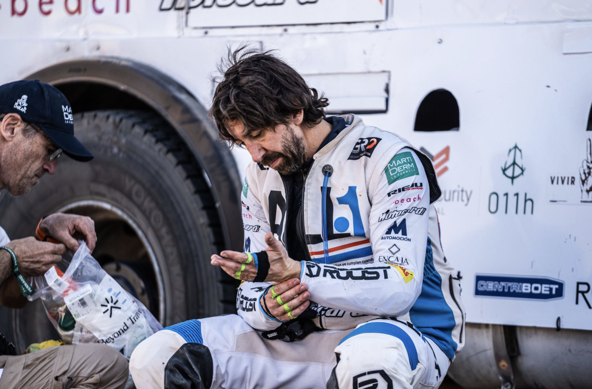 «Tengo sentimientos encontrados. Mientras que por un lado tengo una felicidad tremenda al pensar que hemos terminado la etapa 3, también siento admiración por todos aquellos que han pasado por aquí y han terminado el Dakar, porque es una experiencia muy bonita, pero muy dura» afirma Carlos Llibre.