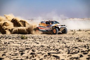 -El Repsol Toyota Rally Team resuelve los problemas eléctricos en el mando del acelerador y el Toyota Hilux T1+ del equipo español se aúpa hasta la 26ª posición absoluta (18ª en T1+).