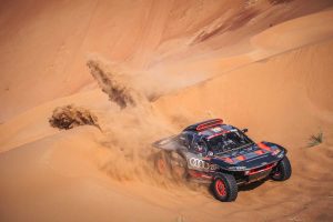 Carlos Sainz salía hoy en el puesto 17 después de escoger una estrategia que le permitiera salir más retrasado. Tras la primera parte de esta etapa de hoy, Carlos y Lucas han logrado recortar distancias con los líderes, adelantando 13 coches, y han llegado al kilómetro 402, donde dormirán esta noche en medio del desierto completamente incomunicados, liderando el etapa, cuatro minutos y medio por delante de su compañero de equipo en Audi Mattias Ekström, cinco minutos y 19 segundos sobre el francés Sebastien Loeb (Bahréin) y más de 24 minutos sobre Nasser Al Attiyah (Hunter)