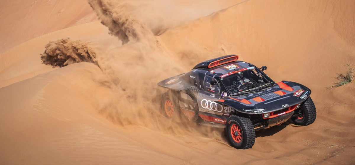 Carlos Sainz y Lucas Cruz con el Audi RS Q e-tron son los líderes del Rallye Dakar tras una terrorífica etapa de 758 kilómetros, disputada en dos días en la que ha mostrado su potencial no solo a los mandos del Audi sino también demostrado su capacidad de estrategia en una de las jornadas más duras del Dakar.