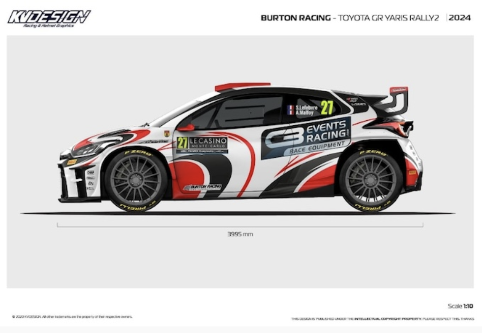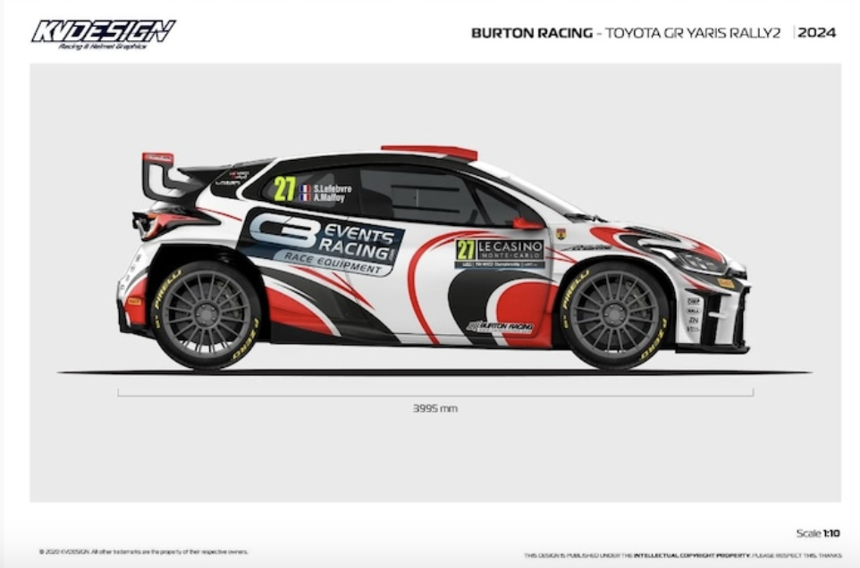 Boceto de la rotulación que lucirá el Yaris Rally2 en el Montecarlo 2024