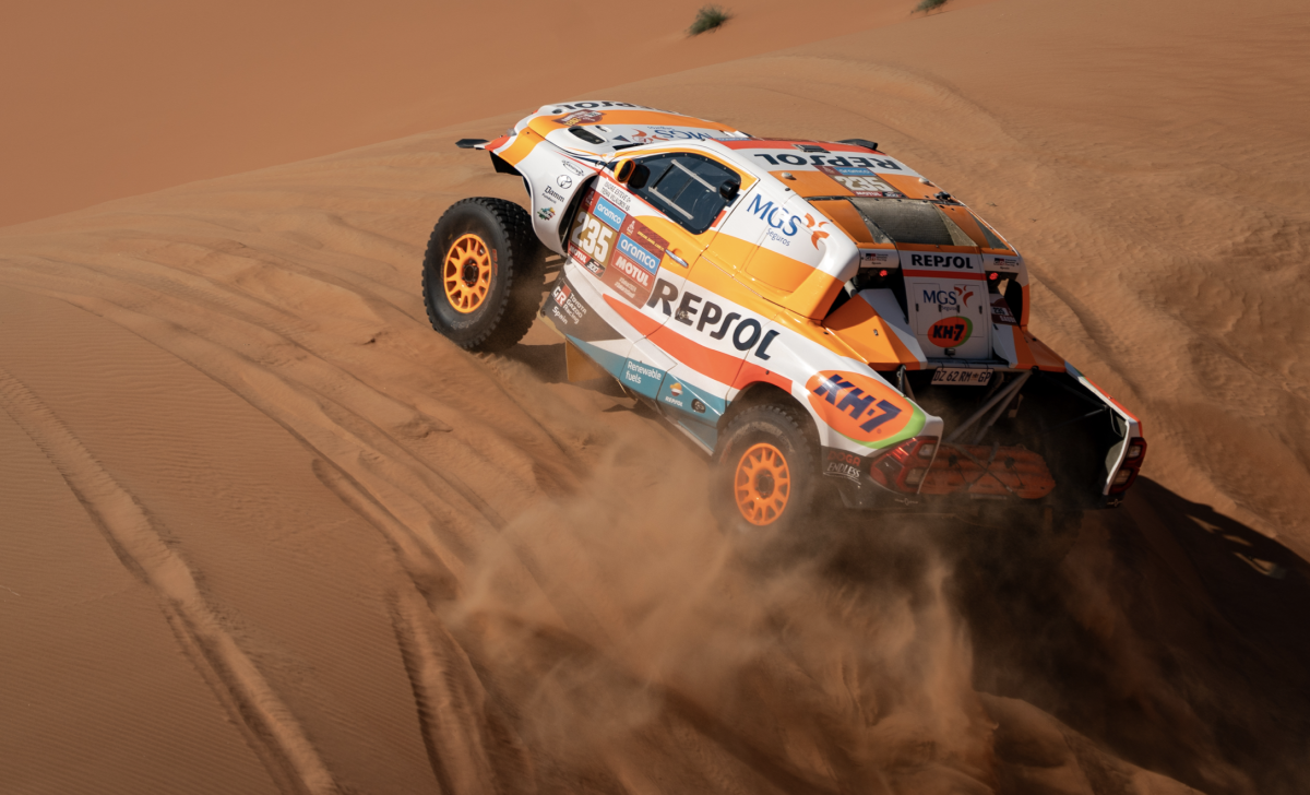 La crono de 48 horas era la etapa reina del Dakar, con un recorrido de 547 kilómetros, íntegramente sobre las dunas del Empty Quarter. Para Esteve y Villalobos ha sido una auténtica maratón, digna de las proezas más legendarias que han hecho célebre el Dakar. El equipo apoyado por Repsol, MGS Seguros, TOYOTA GAZOO Racing España y KH-7 ha empleado 47 horas para completarla, desde que tomaron la salida el jueves por la mañana hasta que han alcanzado la meta de Shubaytah esta mañana. Para ellos sí que ha sido una crono de 48 horas, casi literalmente.