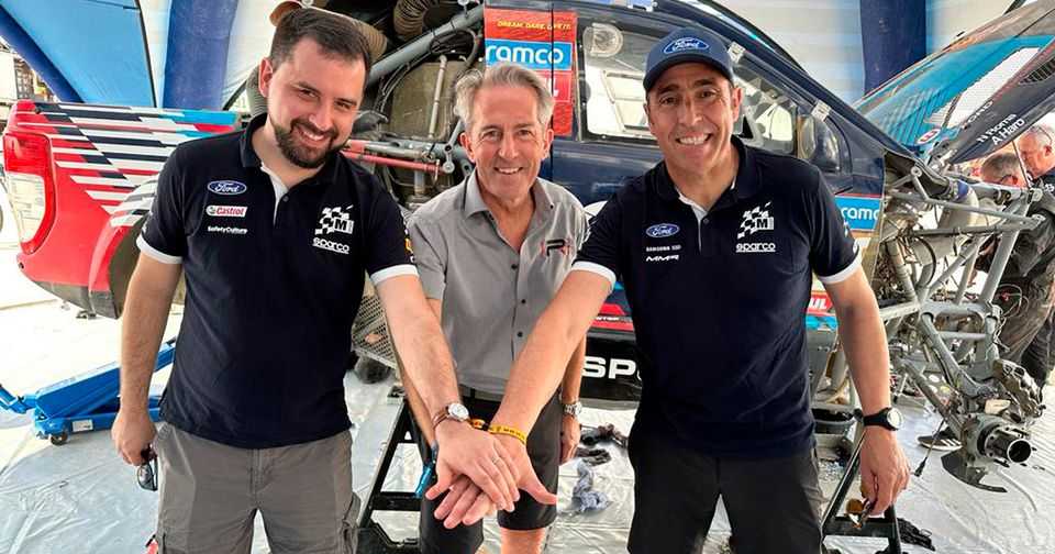 Daniel Alonso visitó la asistencia de M-Sport para encontrarse con Nani Roma y Tom Krawszik y celebrar el fantástico resultado de una de las semanas más duras de la historia de esta prueba, donde la fiabilidad demostrada por el Ford Ranger T1+ nos convence aún más de apostar por este coche.
