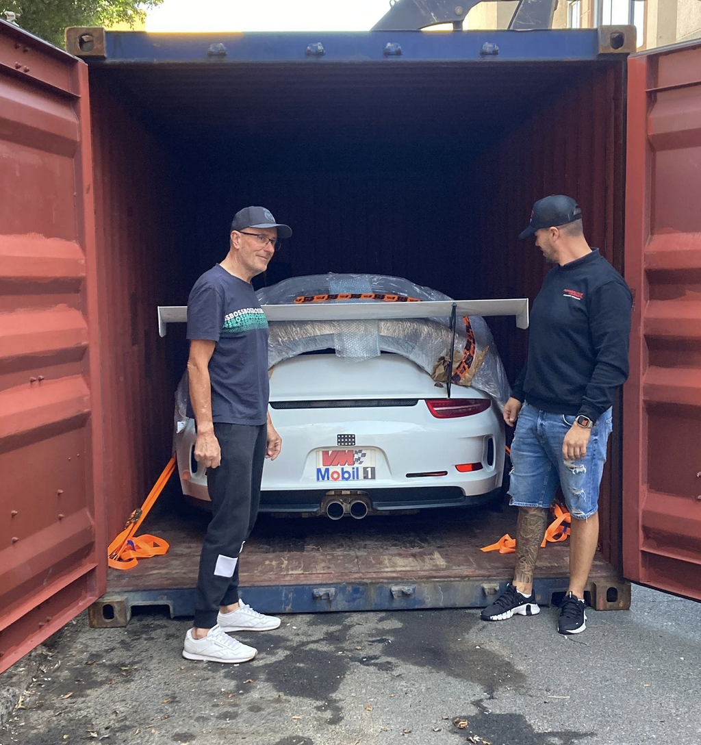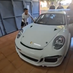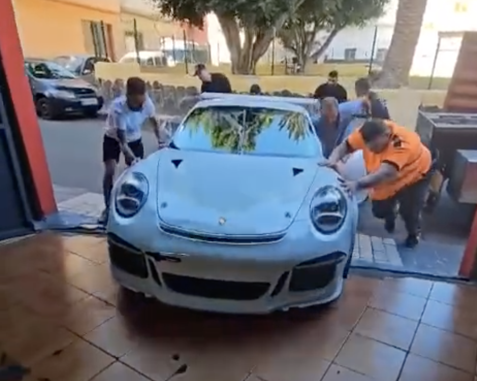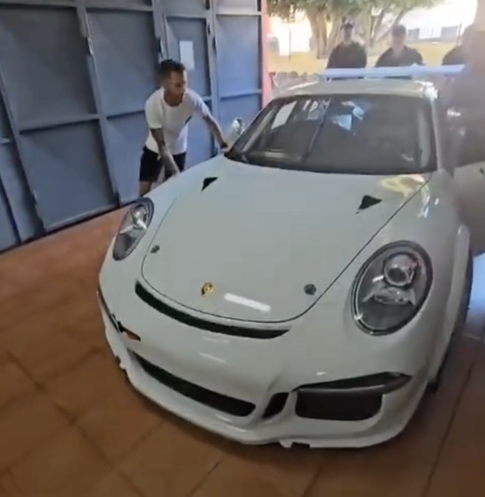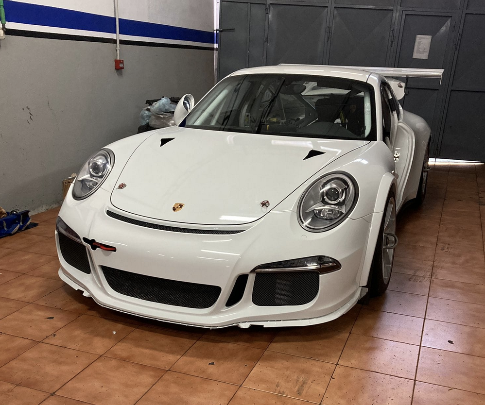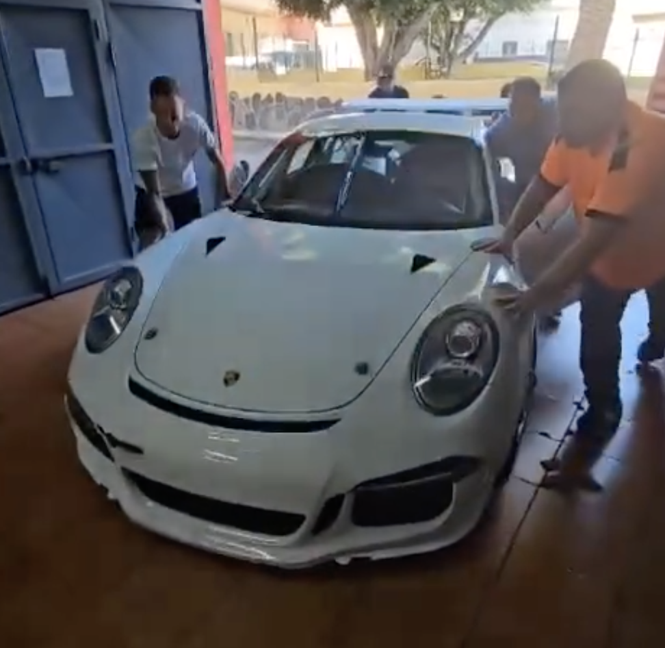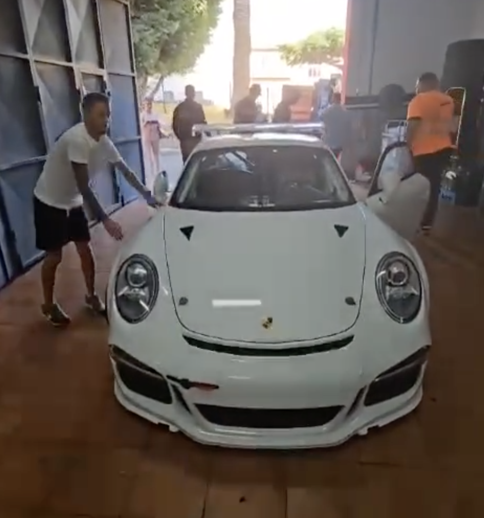 El Porsche 911-991.1 GT3 Cup que recientemente compraba el ìloto grancanario Alby Martel ya descansa en las instalaciones de Reparautos Carrizal, empresa familia de los Martel.
