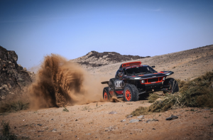 Carlos Sainz y Lucas Cruz (Audi RS Q e-tron) afrontan la recta final del Rallye Dakar 2024 como sólidos líderes de la carrera. En la etapa de hoy, con una larga especial de 417 kilómetros, en Audi se ha realizado una jornada excepcional de equipo y los tres Audi RS Q e-tron han rodado juntos hasta la meta con los pilotos españoles en cabeza.