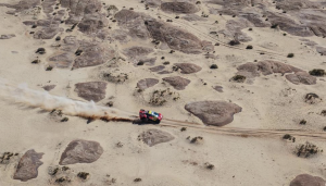 El francés se vio obligado a cambiar dos ruedas sin gato ni farter. A pesar de todo, el piloto de Prodrive todavía tiene esperanzas de ganar el Dakar, ya que Carlos Sainz también ha tenido sus problemas.