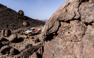La especial de este jueves era un mar de piedras, trialeras y pasos difíciles entre cañones, pero el Toyota Hilux T1+ ha empezado con un buen tono, 39º en el primer punto de paso. Un temprano pinchazo, en el kilómetro 60, ha interrumpido su marcha, sin mayores consecuencias. Sin embargo, en el kilómetro 188, Esteve y Villalobos han empezado a notar una vibración en la transmisión.