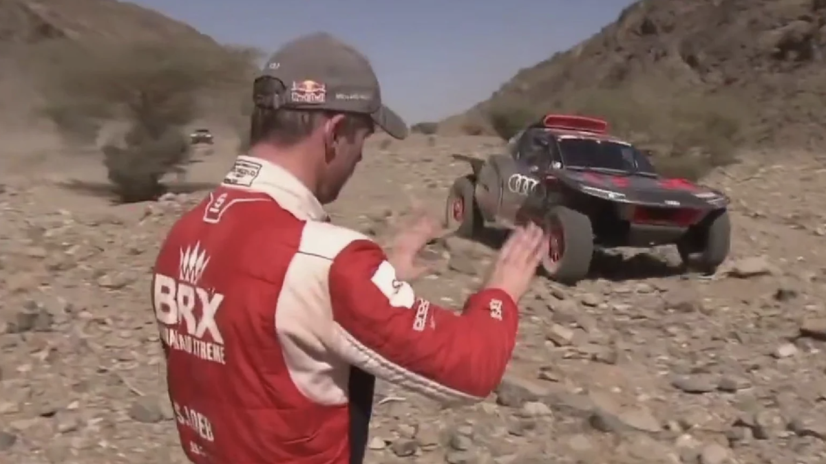 En un momento dado le tocó el turno a los líderes, los españoles Carlos Sainz y Lucas Cruz (Audi), que cuando estaban a la altura de Loeb éste les hace la señal de que están bien y que conduzcan con cuidado y de manera lenta porque el terreno está realmente complicado, algo que sufrió en sus propias carnes. Sin lugar a dudas, una de las imágenes del día, todo un gesto de deportividad y de caballerosidad de un rival hacia el otro en un momento en el que se estaban jugando el triunfo. ¡Grande Loeb!