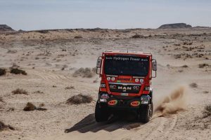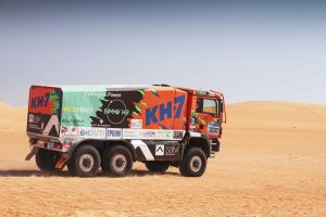 El camión de KH-7 ha liderado la carrera dakariana de principio a fin y ha demostrado que tanto las experimentadas manos de sus tripulantes como su camión, alimentado con un sistema híbrido de combustible de Hidrógeno y HVO (diésel renovable a partir de aceite vegetal hidrotratado), son garantía de éxito y fiabilidad.