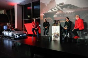 Apenas transcurridos dos años y unos pocos meses desde que Audi desvelara, junto a Carlos Sainz y Lucas Cruz, los detalles del innovador RS Q e-tron para su primer asalto al Rally Dakar en Audi Center Madrid Norte, las vanguardistas instalaciones de la marca de los cuatro aros en la capital de España han sido una vez más el escenario de un evento muy especial: el caluroso recibimiento a la pareja española, recién llegada de Arabia Saudita tras escribir un nuevo capítulo en la historia del automovilismo deportivo al conquistar el mítico rally del desierto con un prototipo electrificado.