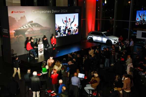 Audi Center Madrid Norte ha sido el escenario de un evento muy especial: la celebración de la victoria de Carlos Sainz y Lucas Cruz en el Rally Dakar 2024 con el innovador Audi RS Q e-tron. La pareja española ha escrito un nuevo capítulo en la historia de la marca al conquistar el rally del desierto más duro del mundo, estableciendo además un nuevo hito, ya que Audi se convierte en el primer fabricante que logra la victoria en la prueba con un prototipo de bajas emisiones con propulsión eléctrica.