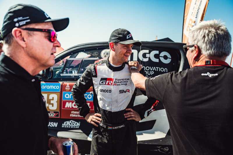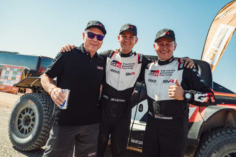 El siguiente más rápido para TOYOTA GAZOO Racing fue el veterano del Dakar Giniel de Villiers y su copiloto, Dennis Murphy. La pareja mostró un buen ritmo al principio, pero una serie de problemas de navegación, junto con una serie de pinchazos, les hicieron descender posiciones. Al final, terminaron 7º en la general.