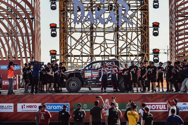 El Dakar 2024 ha sido especialmente duro para Lucas Moraes y Armand Monleon. La pareja se mostró casi perfecta durante la mayor parte de la prueba, escalando hasta una sólida tercera posición en la clasificación general y ganando la tercera etapa. Luego, a falta de dos etapas, uno de los competidores que les precedía tuvo problemas, lo que aupó a la tripulación de TGR a la segunda posición de la general. Cuando la última etapa llegó a su fin en Yanbu, en la costa de Arabia Saudí, Lucas y Armand descendieron hasta la novena posición de la general, que a pesar de verse en el podio, es un resultado fantástico.