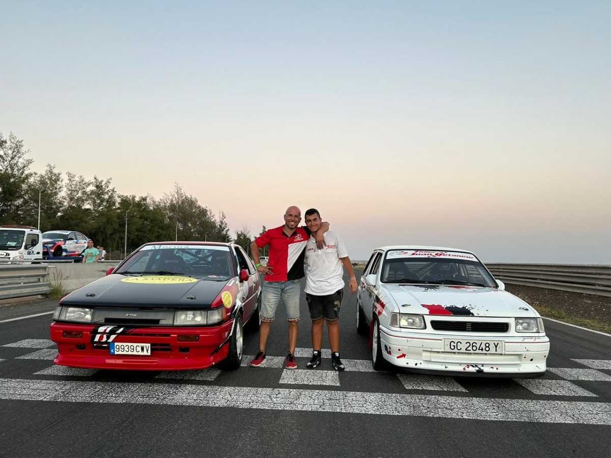 El piloto grancanario Juanillo Betancor, un referente por su espectacularidad y rapidez con su incombustible Toyota Corolla Twin Cam, ha podido cumplir un sueño al rodar en el Circuito de Maspalomas junto a su hijo, al que le ha comprado un Opel Corsa para hacer sus primeros pinitos en el mundo de la competición.