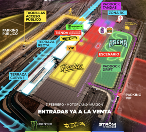 Un área recreativa de 35.000m2 con exposición, restauración, música, Monster Energy Área, zona para los Hot Wheels Legends y diez horas «non-stop» de Drift Pro-diurno y nocturno.