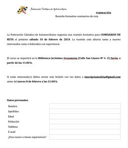 Si estás interesado/a debes enviar el boletín que puedes descargar más abajo en el documento adjunto, con tus datos a inscripcionesfcta@gmail.com antes del jueves 8 de febrero a las 21:00 h.