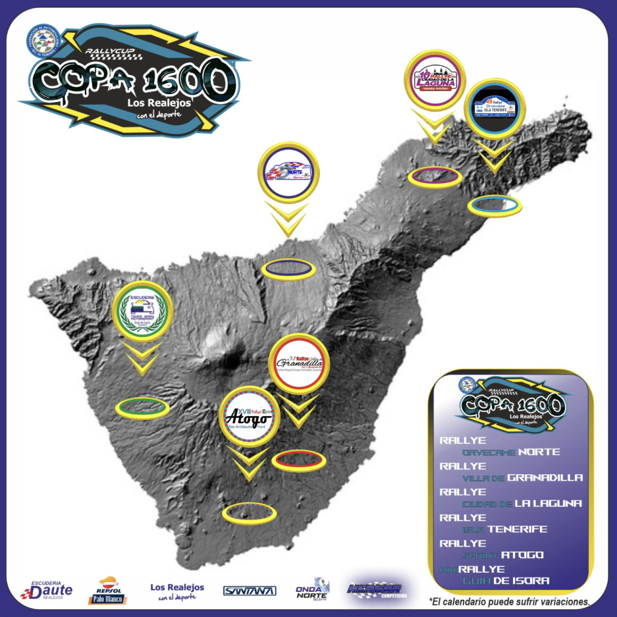 El mes de Marzo será el encargado de acoger la presentación Oficial de la copa, obviamente en el municipio de Los Realejos. Para, muy próximo a esa fecha, empiecen a rugir los motores en la primera carrera, que será el 5 y 6 de Abril, el Rallye Orvecame Norte.
