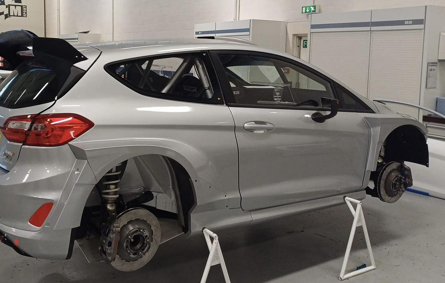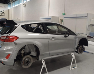 El Ford Fiesta Rally2 de Past-Racing con el que competirá esta temporada 2024 el piloto grancanario Juan Carlos Quintana, campeón de la Copa de España de Rallys de Tierra 2022. está listo para que el rotulista Chemilla Herrera se ponga a trabajar en el.