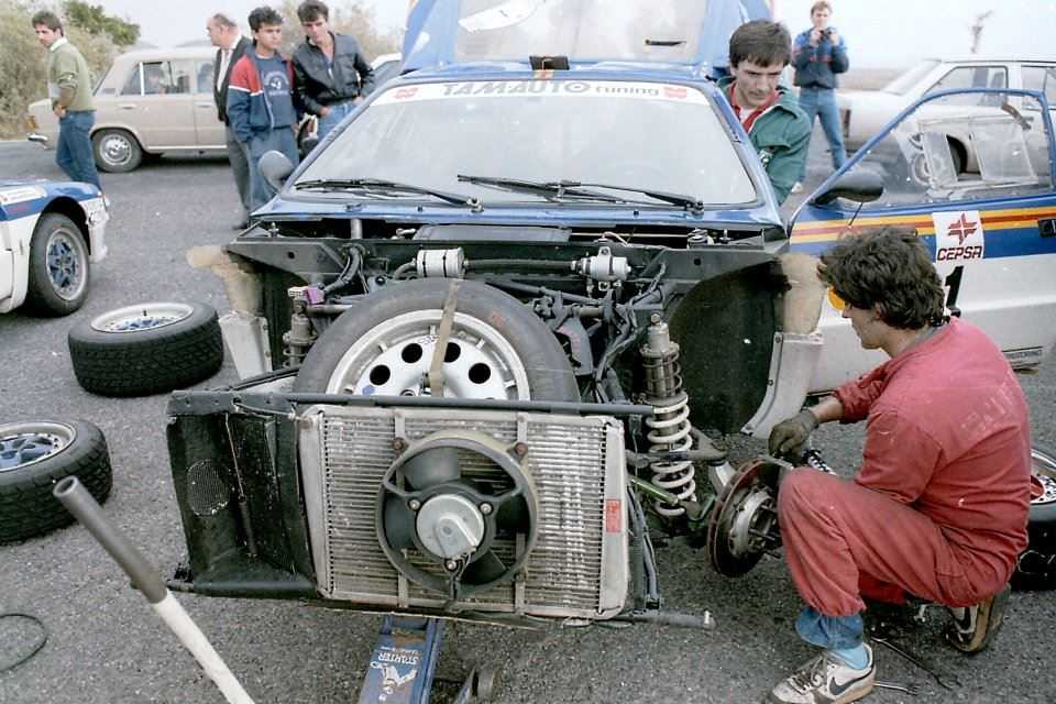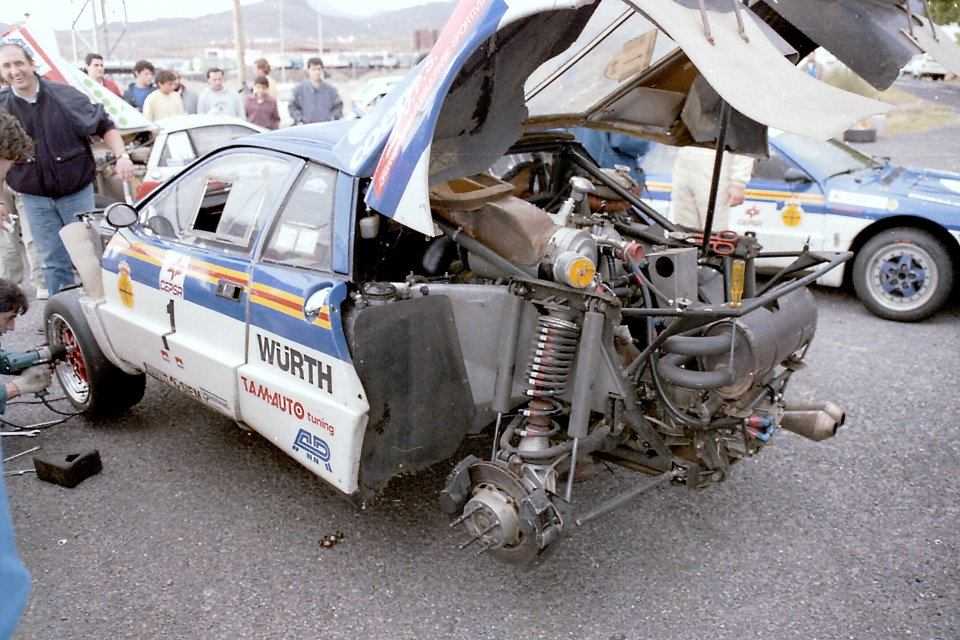 Cuatro unidades Lancia 037 Rally (Grupo B) tomaron la salida en el XVIII Rallye Isla de Tenerife (1986). El redactor gráfico José Manuel Nuez hurgó visualmente en sus entrañas mecánicas. En la imagen referencial panorámica identificamos a tres. A la izquierda, con el número 1, Franco Cunico-Angelo Scalvini (vencedores de la prueba); en primer término (Nº 6) la máquina asignada a José Luis Rivero (dando la espalda al fotógrafo) y Alfredo Medina (no clasificados) y detrás la unidad Nº 9 que conducirán Corrado Tiziano-Claudio Condotta (7º de la General). El cuarto Lancia 037 Rally Tamauto (Nº 3) estará tripulado por Aldo Fasan-Arturo Fiabon (no clasificados).