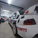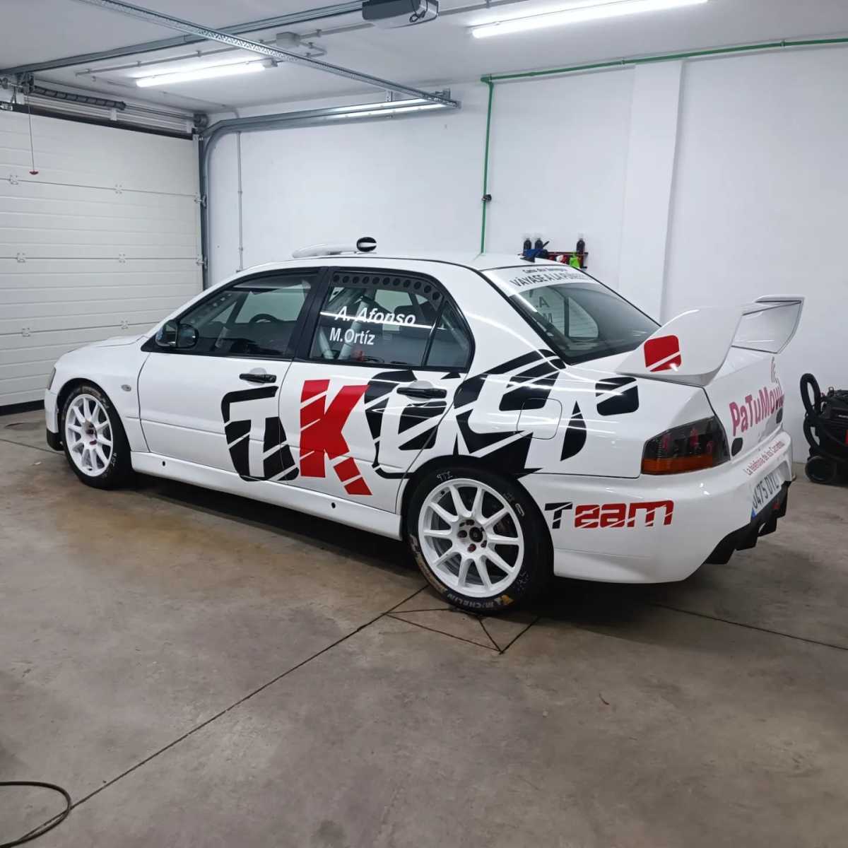 El rotulista Chemilla Herrera realizó el trabajo en los Mitsubishi Lancer Evo IX de los Afonso, padre e hijo.