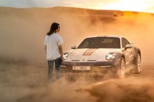 Al volante del 911 Dakar hay un rostro familiar para la diversa y creciente comunidad de aficionados al motor de los Emiratos Árabes Unidos. Amna Al Qubaisi se ha convertido en un referente en el automovilismo local después de ganar dos carreras en el campeonato F1 Academy el año pasado. Como mujer perteneciente a un deporte en el que predominan los hombres, sus logros resultan impresionantes.