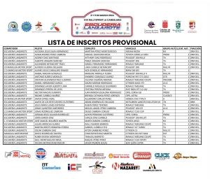 Publicamos la lista provisional de inscritos del XVII Rallysprint La Candelaria, prueba que se disputará los días 8 y 9 de marzo en la isla de Lanzarote.