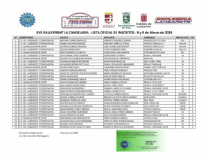 Publicamos la lista oficial de inscritos del XVII Rallysprint La Candelaria, prueba que se disputará los días 8 y 9 de marzo en la isla de Lanzarote.